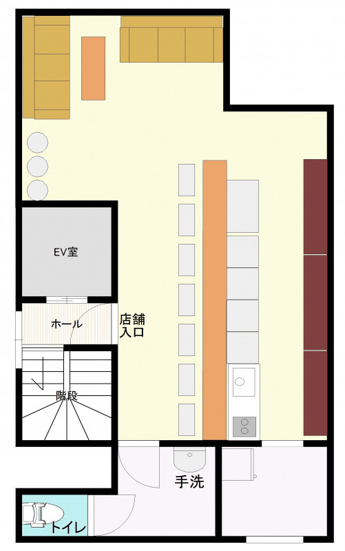 【4F】 カウンター9席、ボックス席×2、調理室、洗面、トイレ、冷蔵庫、ガスコンロ、食器棚付、EV有